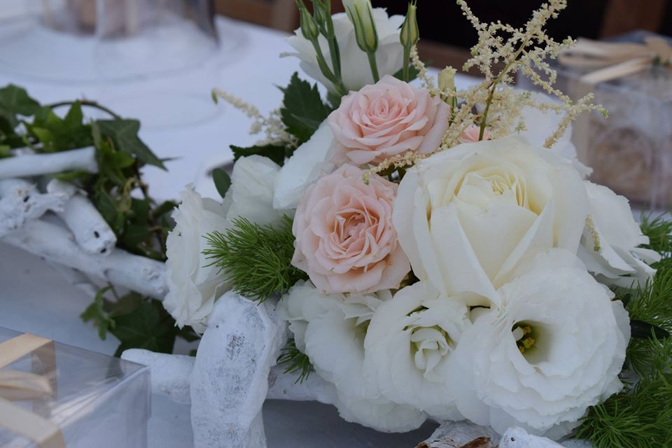 Αυτό που τον κάνει τρομερά εντυπωσιακό ο συωδιασμός θαλασσόξυλα με λουλούδια σε αποχρώσεις λευκού και πολύ παλ σομών ,